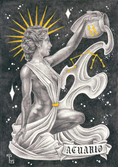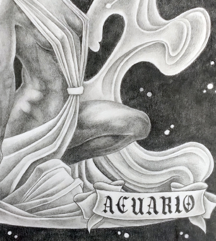 Ilustración original de Virgo. Lápiz y pintura acrílica sobre papel.