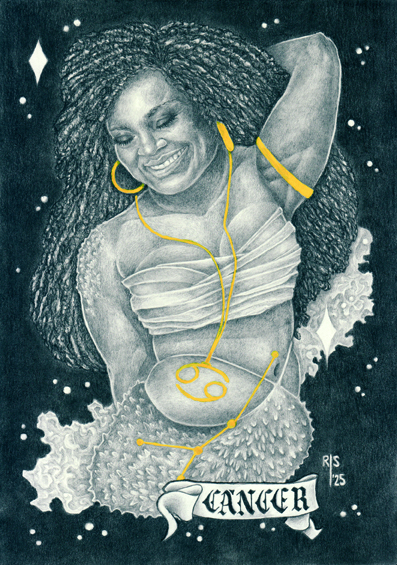 Ilustración original de Virgo. Lápiz y pintura acrílica sobre papel.