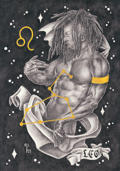 Ilustración original de Virgo. Lápiz y pintura acrílica sobre papel.